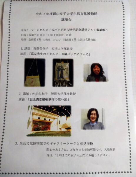 「講演会開催のお知らせ」令和7年度郡山女子大学生活文化博物館