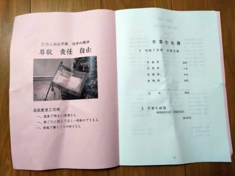 令和7年度卒業生は合計90名でした。学科の内訳は普通科58名音楽科7名、