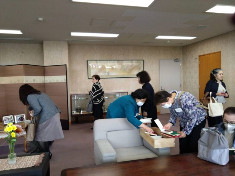 この日は皆さんに見ていただく絶好の機会として見学コースに組み入れました。支部長さん方もこのお部屋に入ったという方は少なく学生時代に戻ったかのようなキラキラとしたまなざしで見学をされました。一人ひとりの記憶に故富左先生のお姿が新たに胸に刻まれたことでしょう。