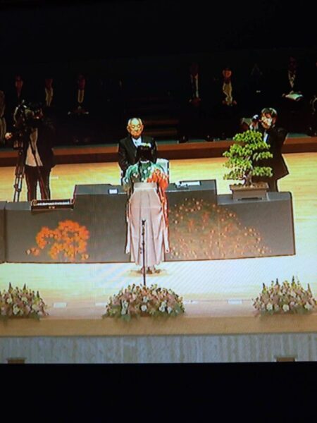 郡山開成学園同窓会 安斉悦子開成いすず会理事長が卒業生に向けてそれぞれの学科で学んだ専門知識を持って社会に貢献していくこと、教養を身につけた女性として、社会人としてあるべき姿を心に描き力強く歩んで行ってくださいと「はなむけの言葉」を贈られました。