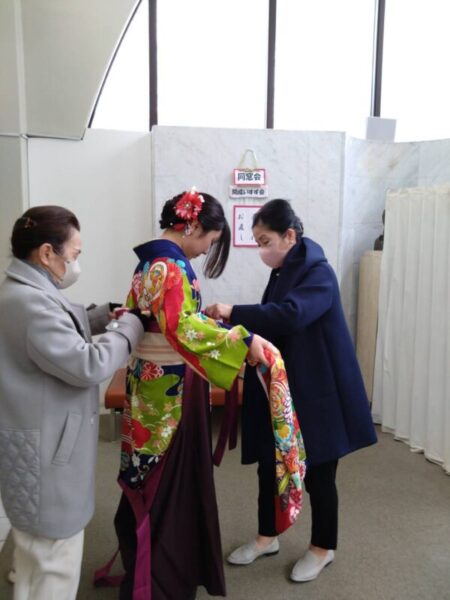 毎年感じることですが、現在は着物を纏った際の所作について教えてあげる機会もなく、ただ着せてもらったという事で、立ち居振る舞いについてはわからないというのが現状です。今後は同窓会として「和装の際の所作」を課題とすることも視野に支援を考えていきたいと思います。